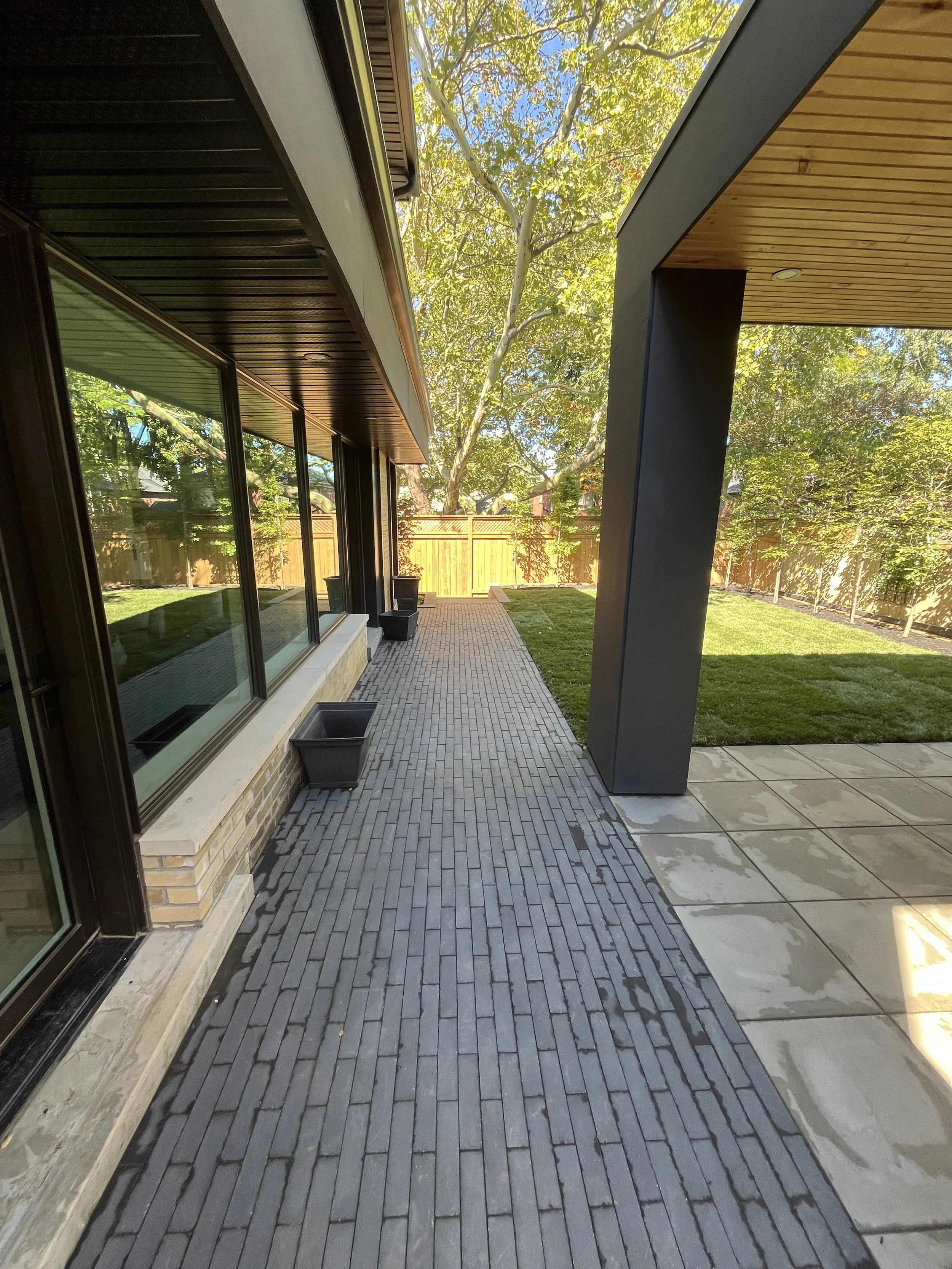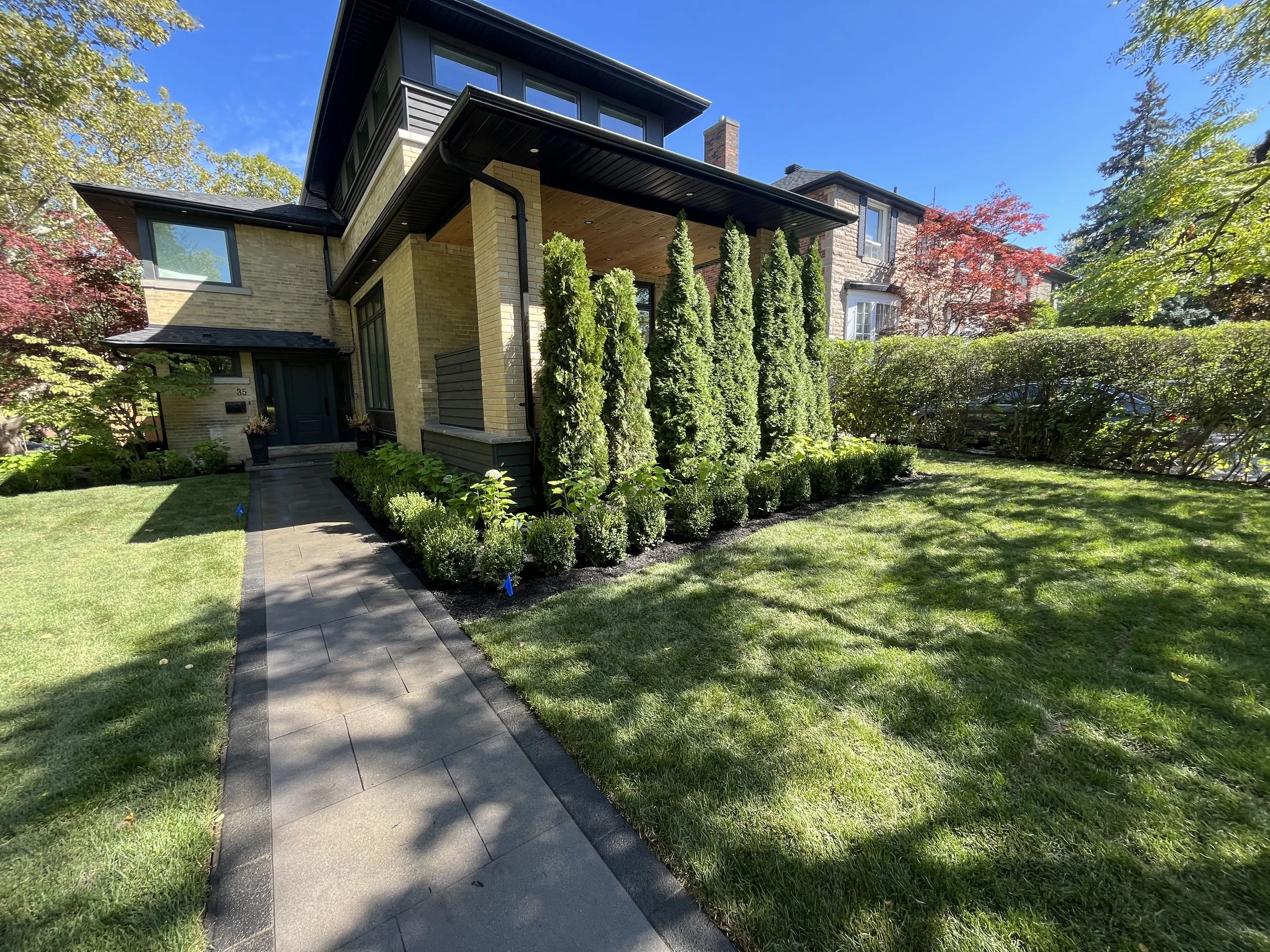 High-quality materials and expert craftsmanship were used to create a polished driveway, entrance and access around the side of the house.